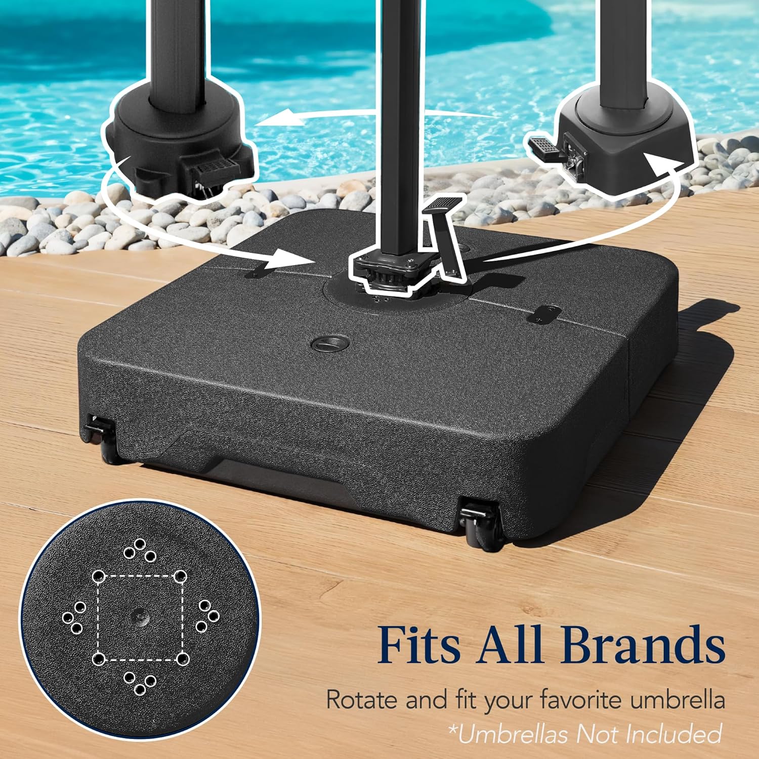 Best Choice Products 330lb Mobile Cantilever Offset Patio Umbrella Base, Universal Fit Heavy-Duty Outdoor Portable Stand w/Wheels Locks, Fillable Weights Set - Black