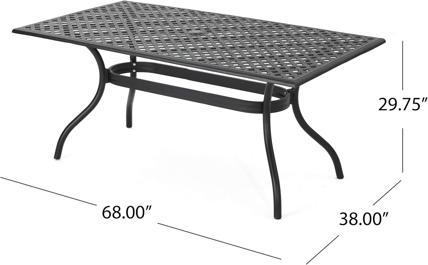 Christopher Knight Home Cayman Outdoor 6-Seater Cast Aluminum Dining Set, 7-Pcs Set, Black Sand
