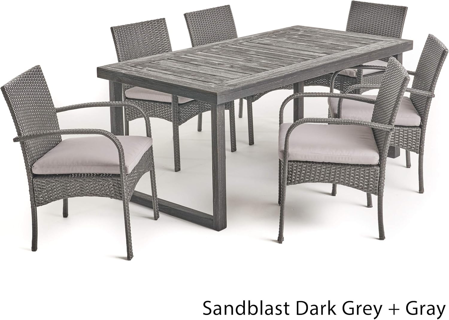 Christopher Knight Home Doris Outdoor 6-Seater Dining Set, Sandblast Dark Grey + Gray
