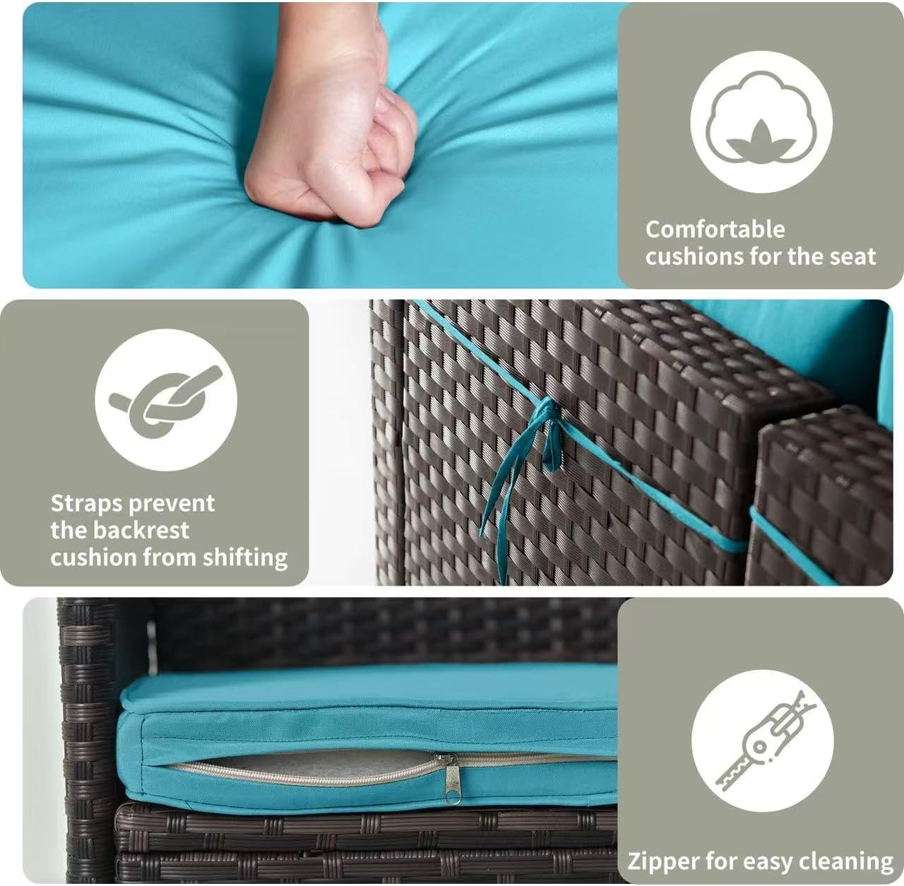 Gotland 7 Pieces Patio Furniture Set with 1 Coffee Table, 6 Seater Wicker Rattan Patio Set with 29.5'' High Backrest Thick Cushions Adjustable Foot Pads, for Porch Deck Garden Green Blue