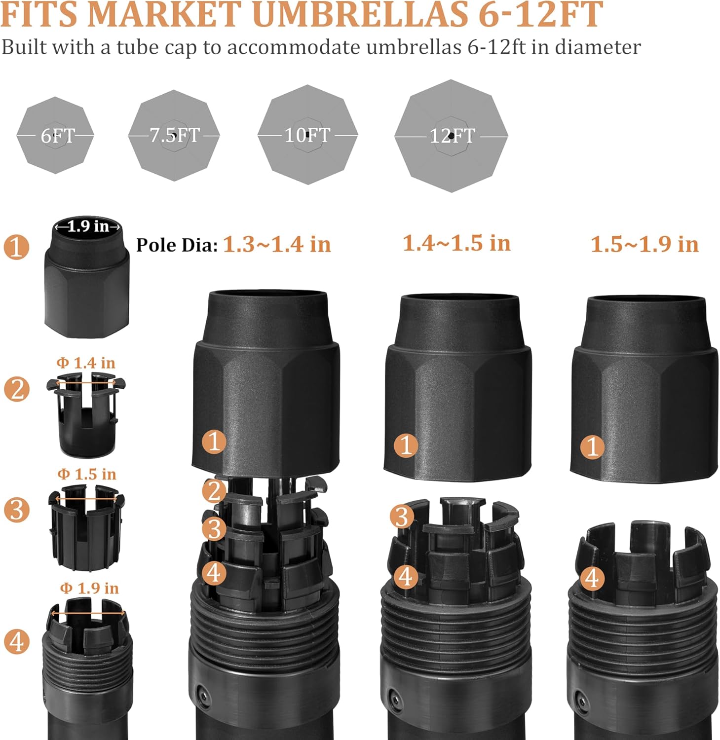 Suitable for different sizes of market umbrella poles.